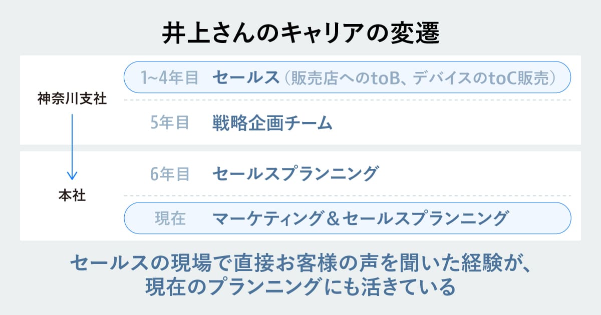 ⸺あらためて、井上さんの入社後から現在の部署に至るまでのキャリアについて教えてください。