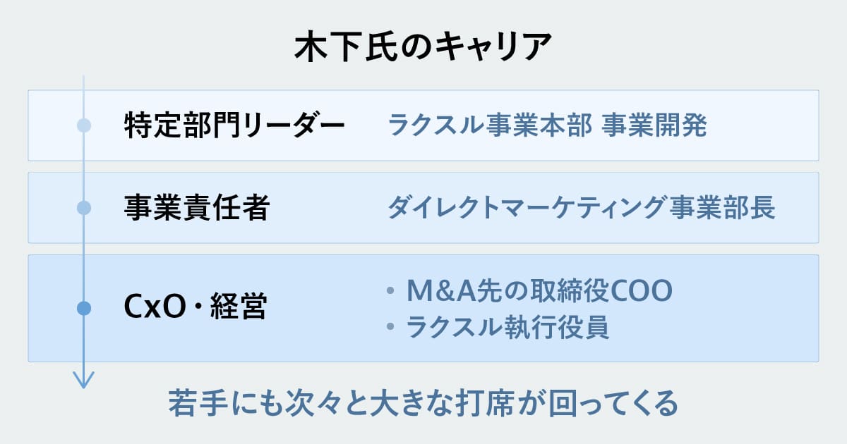 私自身も印刷事業でキャリアをスタートさせ、入社2年目で特定の商材のPL責任を負う部門リーダーを、4年目ではダイレクトマーケティングの事業責任者を務めました。6年目にはM&A先に取締役COOとして出向し、経営体制を一本化して売上を30億円から100億円へと成長させるなど、20代から大きな責任を担ってきました。
